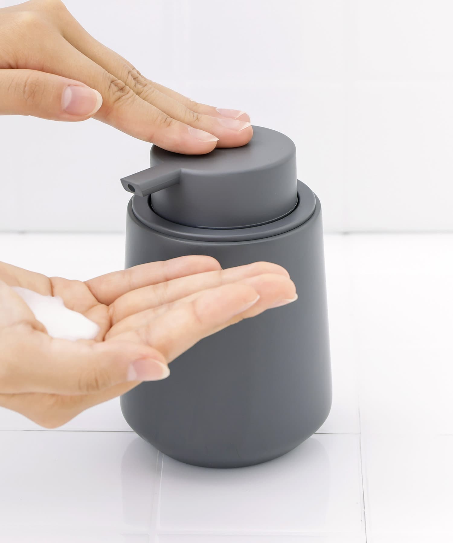 Elegancki dozownik do mydła w płynie, który doskonale sprawdzi się w każdej łazience czy kuchni. Wykonany z wysokiej jakości ceramiki prezentuje się nowocześnie i stylowo, dzięki czemu łatwo wpasuje się w różne aranżacje wnętrz – od klasycznych po minimalistyczne i designerskie. Jego uniwersalny wygląd sprawia, że pełni nie tylko funkcję praktyczną, ale też dekoracyjną. Dzięki pojemności 400 ml nie trzeba często uzupełniać mydła, co podnosi komfort użytkowania. Solidna głowica wykonana z wytrzymałego tworzywa ABS zapewnia wygodne i płynne dozowanie, a sam dozownik jest łatwy w utrzymaniu czystości i odporny na codzienne użytkowanie. To rozwiązanie idealne zarówno do domu, jak i do eleganckich przestrzeni biurowych, hoteli, restauracji czy gabinetów.