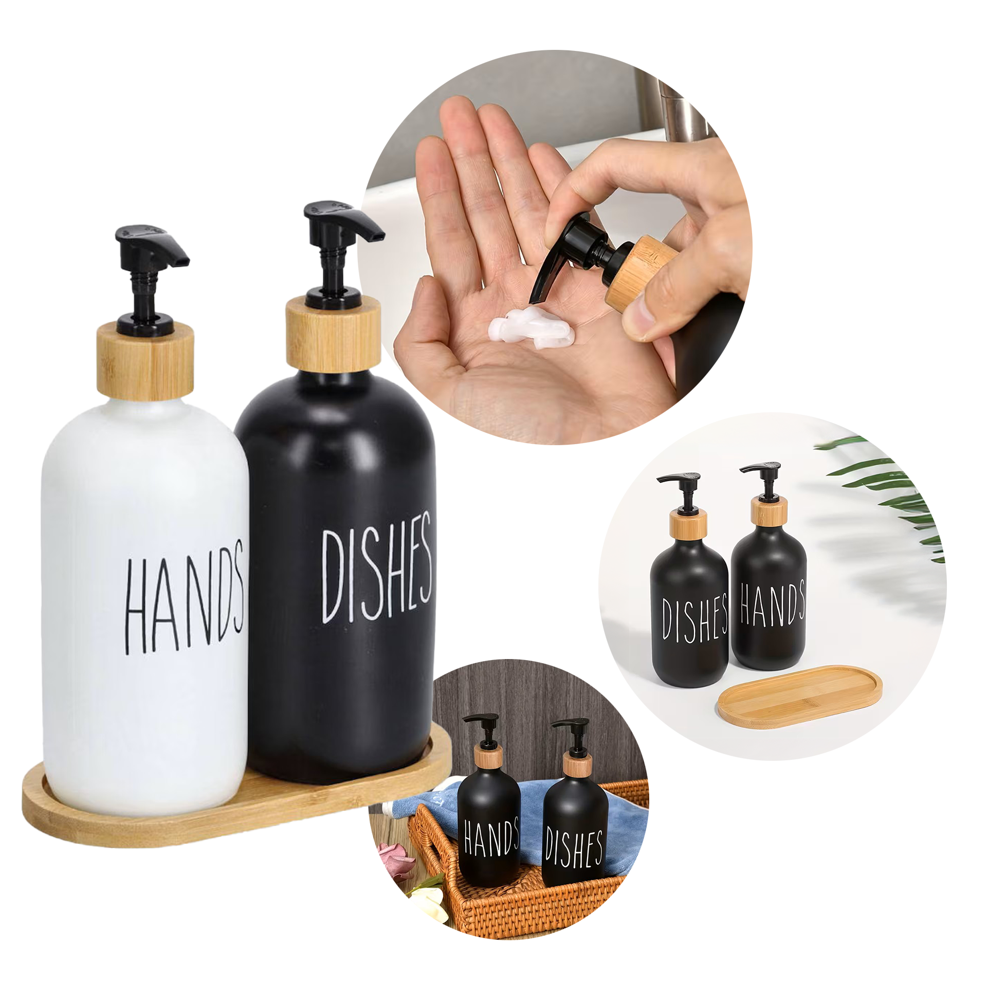 Dozowniki zostały zaprojektowane z myślą o wygodzie i higienie. Ergonomiczna pompka umożliwia komfortowe użytkowanie jedną ręką, a wykonanie z grubego szkła sprawia, że są stabilne i ekologiczne. Dzięki uniwersalnej formie doskonale sprawdzą się zarówno w domu, jak i w przestrzeniach biurowych czy usługowych.