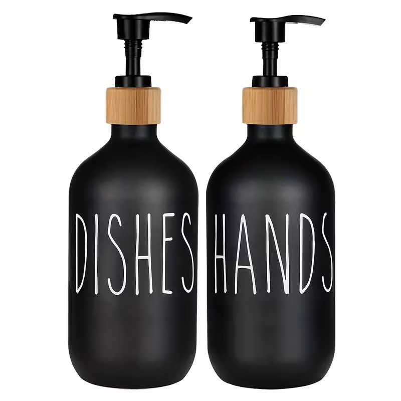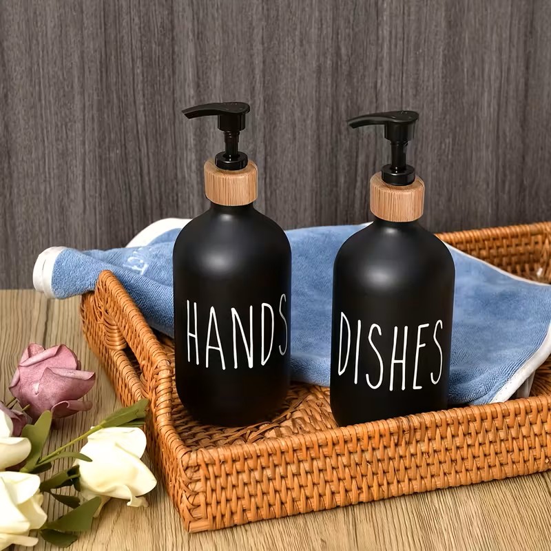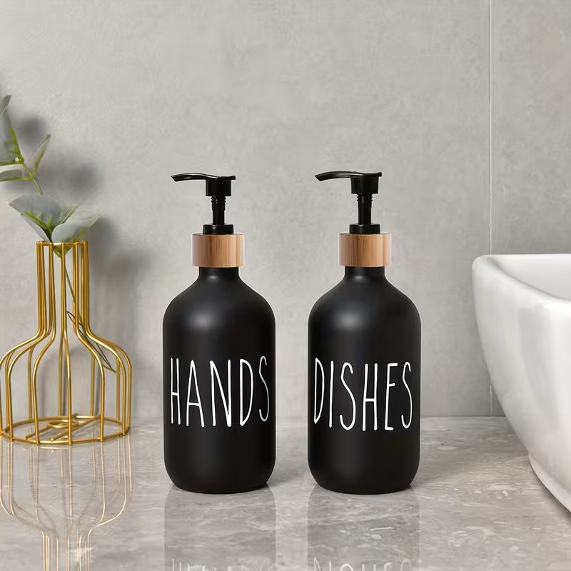 Praktyczny zestaw dwóch dozowników z pompką o pojemności 500 ml to idealne rozwiązanie do kuchni, łazienki lub biura. Sprawdzą się doskonale do mydła w płynie, balsamu, płynu do naczyń oraz środków dezynfekujących. Minimalistyczny czarny design nadaje elegancji i pasuje do każdego wnętrza, łącząc funkcjonalność z estetyką.