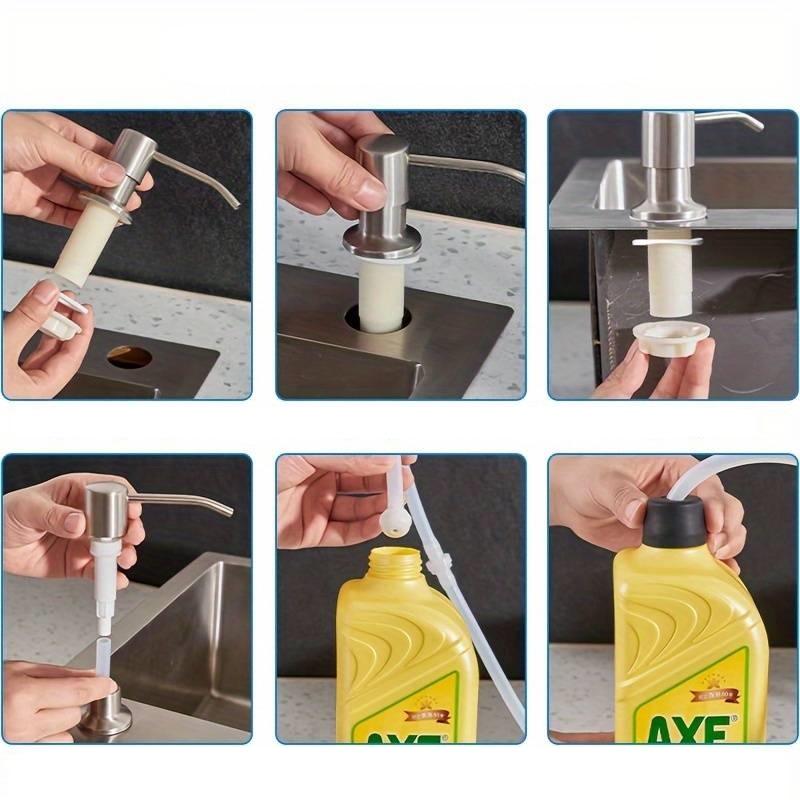 Dzięki temu, że rurkę od dozownika wkłada się do pojemnika z płynem do naczyń ilość jest nieograniczona, nie tak jak w przypadku dozowników z dołączonym pojemnikiem.