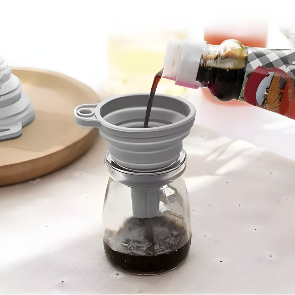 Lejek został wykonany w 100% z silikonu dopuszczonego do kontaktu z żywnością, dzięki czemu jest bezpieczny i higieniczny w codziennym użytkowaniu. To praktyczne rozwiązanie, które ułatwia gotowanie, pieczenie i przelewanie napojów, jednocześnie oszczędzając miejsce w kuchennej szafce.
