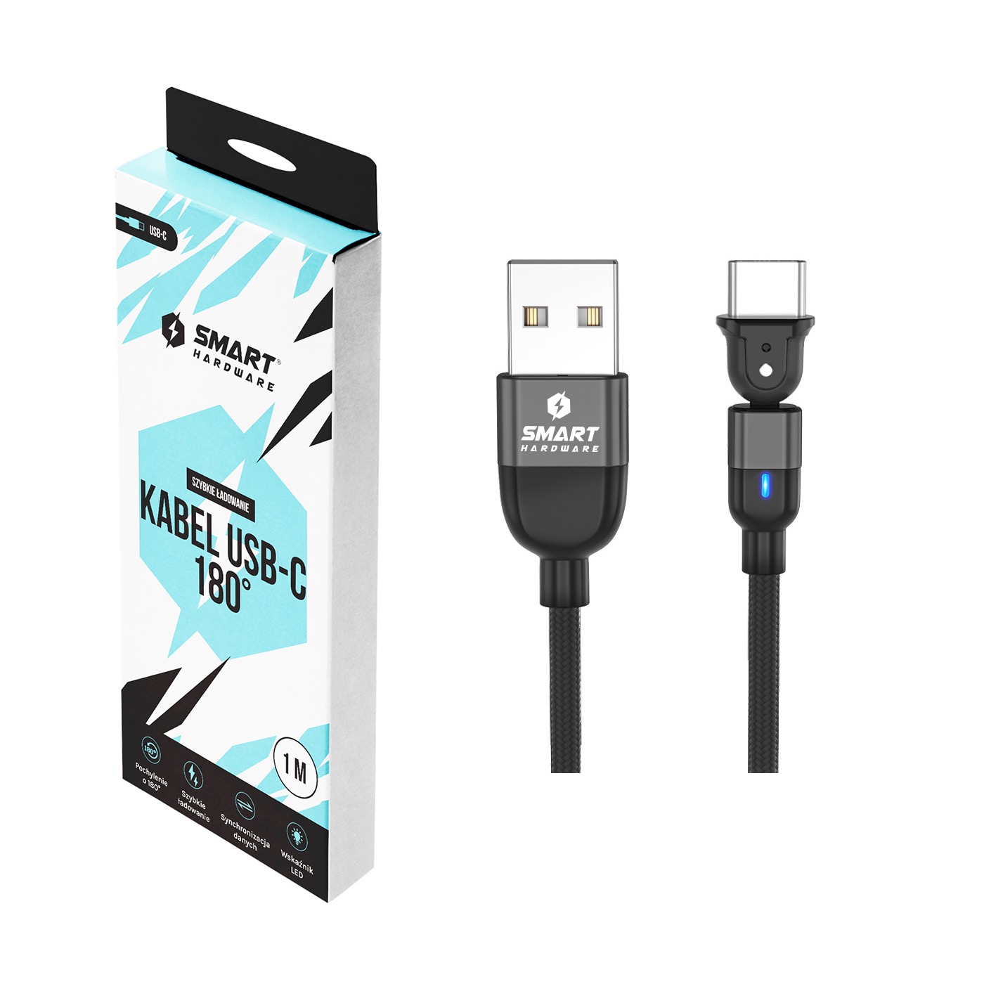 Smart Hardware Kabel 180° USB-C to wysokiej jakości, innowacyjny kabel USB-C, który został zaprojektowany z myślą o maksymalnej wygodzie użytkowania. Dzięki unikalnemu kształtowi wtyku o 180 stopniach, ten kabel pozwala na łatwe i wygodne podłączanie do urządzeń bez konieczności martwienia się o kierunek wtyku.