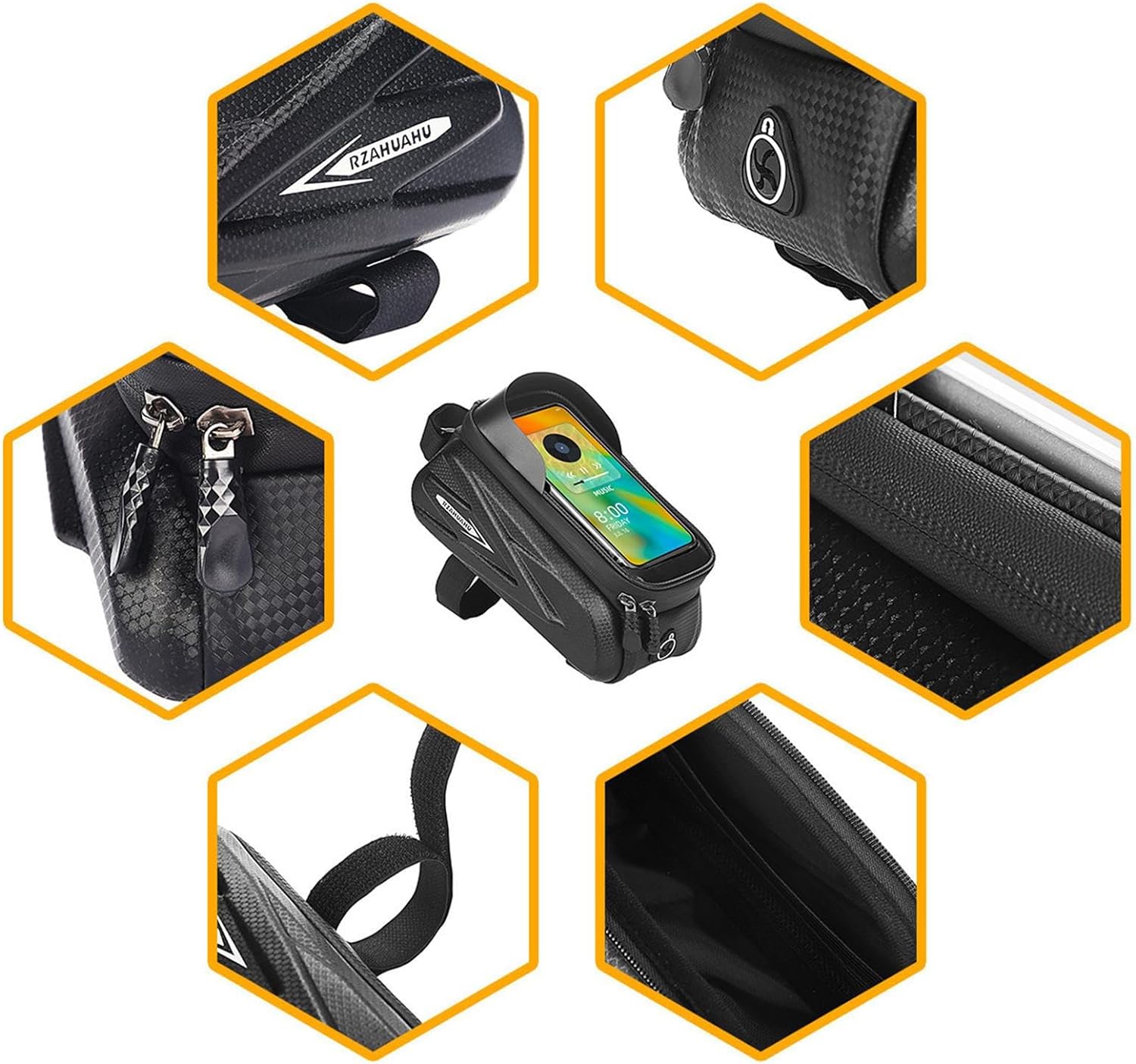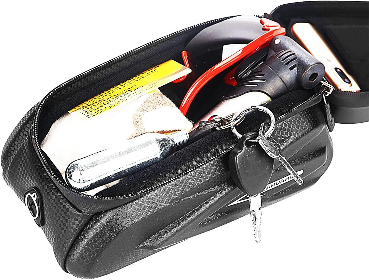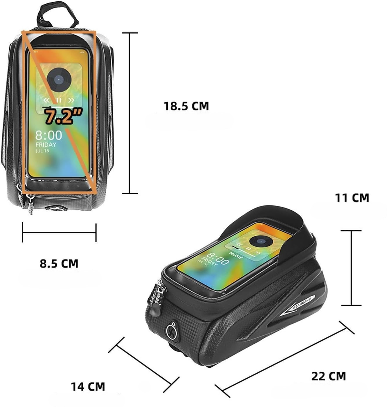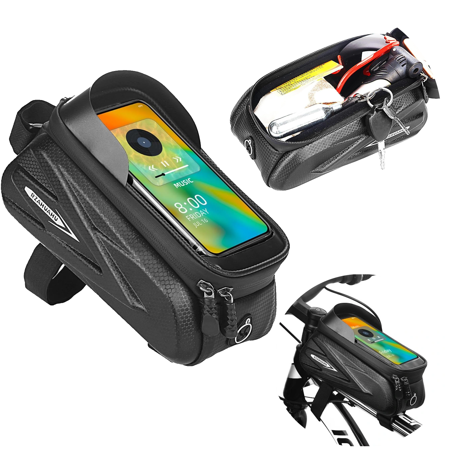 Wodoodporna torba na rower na ramę przednią górną. Torba na telefon ze schowkiem