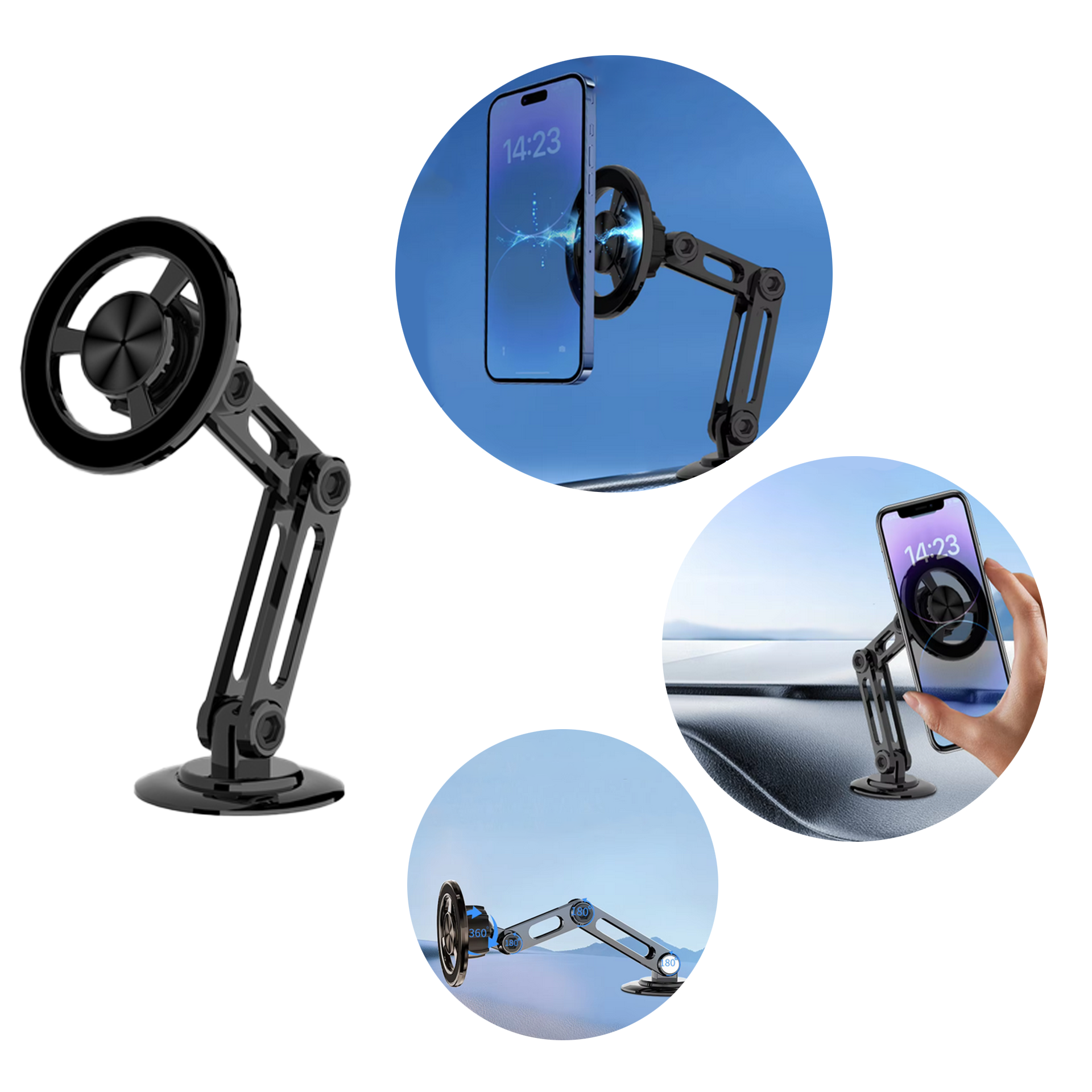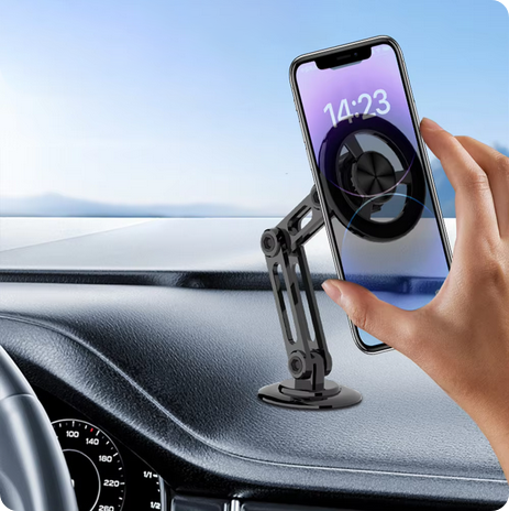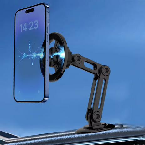 Uchwyt samochodowy został zaprojektowany z myślą o użytkownikach iPhone’ów, które korzystają z technologii MagSafe, dostępnej od modeli iPhone 12 wzwyż. Dzięki wbudowanym magnesom o wysokiej sile trzymania, uchwyt idealnie współgra z systemem MagSafe, zapewniając pewne i stabilne przytwierdzenie telefonu do uchwytu. Nie wymaga to żadnych dodatkowych akcesoriów ani etui, co sprawia, że korzystanie z uchwytu jest niezwykle wygodne i szybkie – wystarczy zbliżyć telefon do uchwytu, a magnes automatycznie przyciągnie urządzenie, utrzymując je na miejscu.