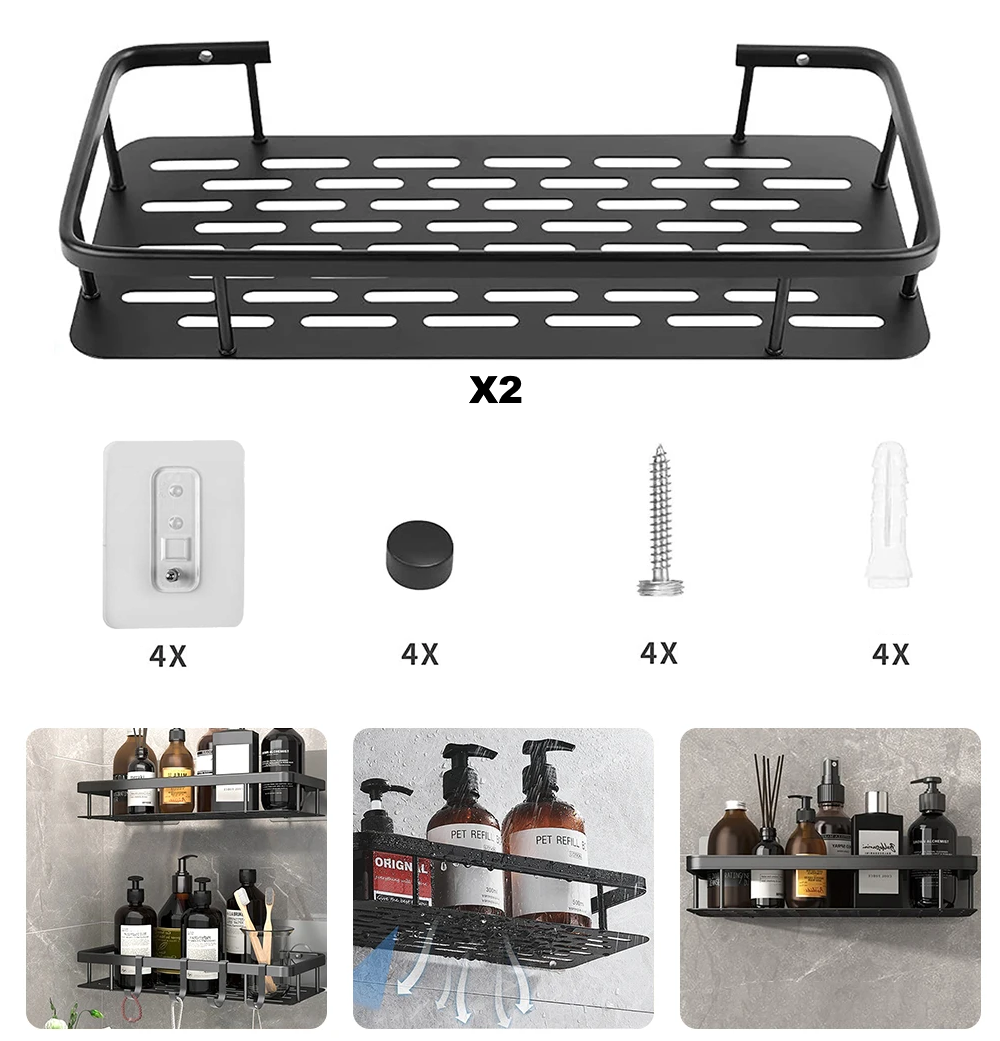 Prostokątna półka pod prysznic montowana na kołki lub haczykach przylepnych to funkcjonalne i nowoczesne rozwiązanie, które sprawi, że organizacja przestrzeni w łazience stanie się prostsza i bardziej efektywna. Ta praktyczna półka została zaprojektowana z myślą o łatwym montażu bez konieczności używania narzędzi czy wiercenia otworów w ścianie.