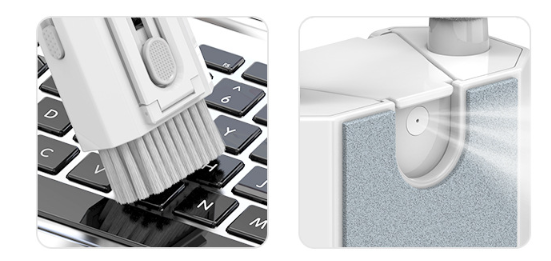 Pędzelek antystatyczny:Specjalnie zaprojektowany pędzelek antystatyczny usuwa kurz i inne drobne zanieczyszczenia z trudno dostępnych miejsc, takich jak przyciski klawiatury czy gniazda słuchawkowe. Zapewnia kompleksową czystość bez ryzyka uszkodzenia elektroniki.